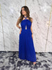 Abito plissettato con scollatura ad intreccio contrario, con allacciatura dietro e schiena scoperta ed elastico in vita.