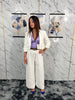 Blazer crop con spalline, fodera interna, maniche arricciate e finte tasche.