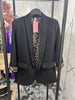 Blazer strutturato con fodera interna maculata, e spalline imbottite.