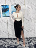 Body elasticizzato con scollo rotondo con dettaglio aperto a goccia, spalline imbottite, chiusura nel fondo.