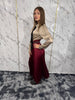 Camicia crop top in raso con polsini con bottone di chiusura, e cravatta in paillettes inclusa e rimovibile.