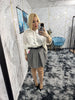 Camicia stile oversize più lunga dietro, maniche lunghe, bottoni fino al fondo e tasca applicata.