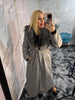 Cappotto strutturato extra lungo, con fodera, spalline imbottite, pelliccia super morbida estraibile, 1 bottone in chiusura, cintura con passanti in vita, e tasche laterali.