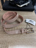 Cinturina ricoperta di strass con base rosa scamosciata, e fibbia color argento.