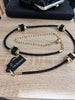 Cinturina elegante con gancio regolabile, dettaglio con cubi e applicazioni di strass.