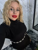 Cinturina con applicazione a G ricoperta di strass regolabile con catenella.