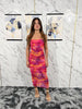 Coord-set composto da top elastizzato in tulle, foderato nel davanti e gonna a longuette drappeggiata nei lati e foderata