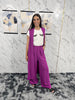 Coordinato composto da gilet lungo ampio, con pantalone palazzo con elastico in vita e tasche laterali.