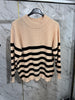 Maglione a righe , vestibilità comoda/over . Presenta il mezzocollo e la manica è a reglan.