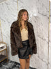 Pelliccia ecologica con collo a rever, vestibilità oversize, foderata, con tasche laterali e bottone singolo automatico in chiusura. Colore marrone