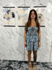 Laccetto regolabile. Gonna a balze e drappeggio nel retro.