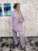 Tailleur over size composto da blazer con spalline e bottone, con fodera interna, e pantalone palazzo ampio con chiusura con zip e bottone.