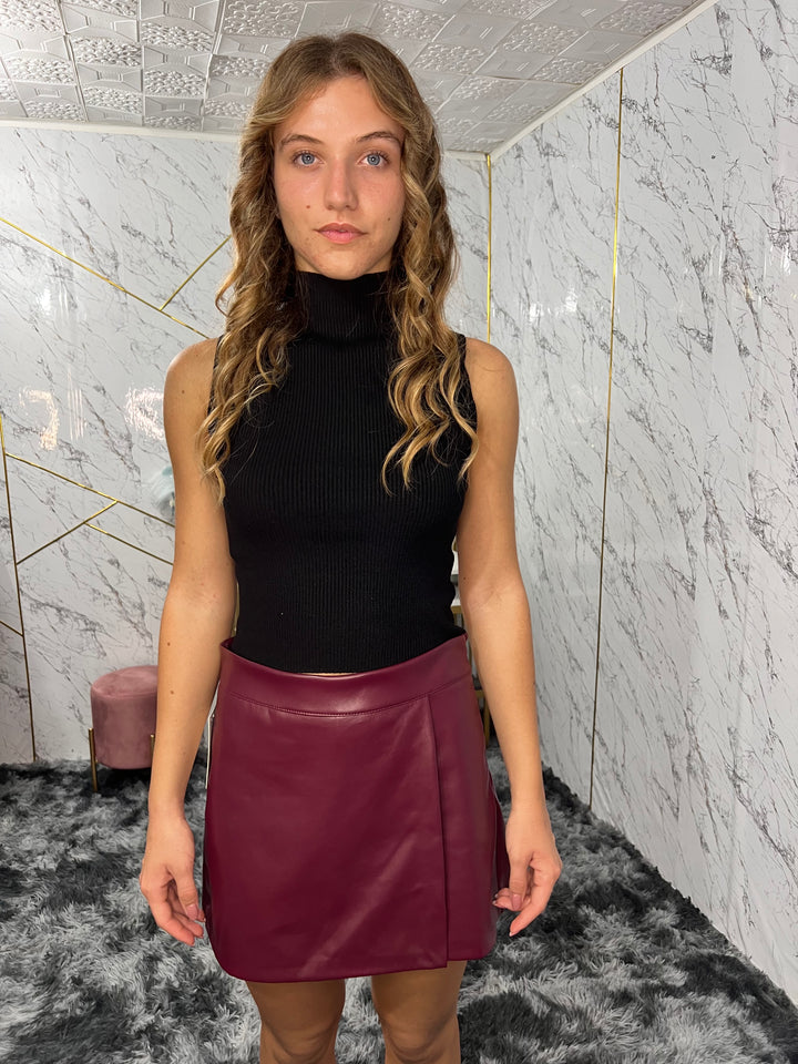 Crop top sotto giacca, con collo alto ,costine fine, smanicato.