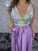 Top interamente di paillettes con coppette imbottite, scollo a V, spalla larga e Vneck anche nel retro.